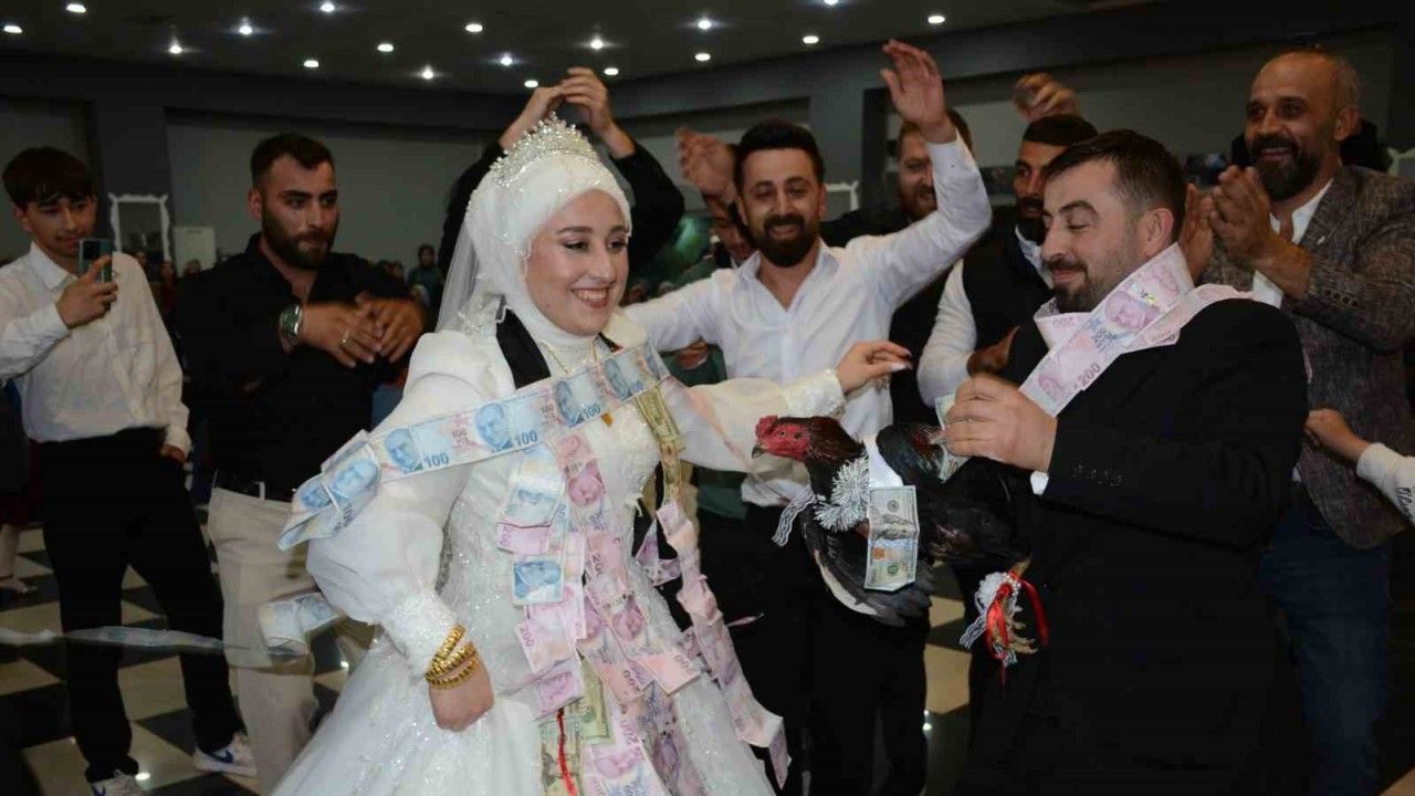 Artvinli Aslıhan ve Hasan Badur çiftinin düğününde renkli ve eğlenceli anlar yaşandı. Genellikle altın ve para takılarak yapılan takı töreninde bu kez damat Hasan Badur beklenmedik bir sürprizle karşılaştı. Özel sektörde çalışan ve tavuk-horoz beslemeyi hobi haline getiren Hasan Badur, bir süre önce çok sevdiği horozunu kaybetti. Bunu bilen arkadaşları, damada unutulmaz bir hediye vermek için Tayland’dan canlı tavuk ve horoz getirtti. Düğün salonunda damada takdim edilen canlı hayvanlar, davetliler arasında hem şaşkınlık hem de büyük bir ilgi uyandırdı. Damat Badur kendisine hediye edilen horozla dans ederken, davetliler bu anları alkışlarla karşıladı.