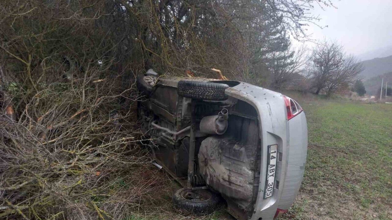 Kaza, Bolu’nun Mudurnu ilçesine bağlı Hacıhalimler köyü mevkisinde meydana geldi. Kimliği henüz belirlenemeyen kadın sürücü, 14 ABY 305 plakalı otomobiliyle seyir halindeyken direksiyon hakimiyetini kaybetti. Kontrolden çıkan otomobil takla atarak yoldan metrelerce ileriye sürüklendi. Kazayı gören vatandaşlar durumu 112 Acil Çağrı Merkezi’ne bildirdi. İhbar üzerine bölgeye itfaiye, ambulans ve jandarma ekipleri sevk edildi. Yaralı sürücü, yan yatan araçtan çıkarılarak Bolu İzzet Baysal Eğitim ve Araştırma Hastanesi’ne sevk edildi. Yaralı kadının tedavisi sürerken, jandarma ekipleri kaza yerinde inceleme başlattı.