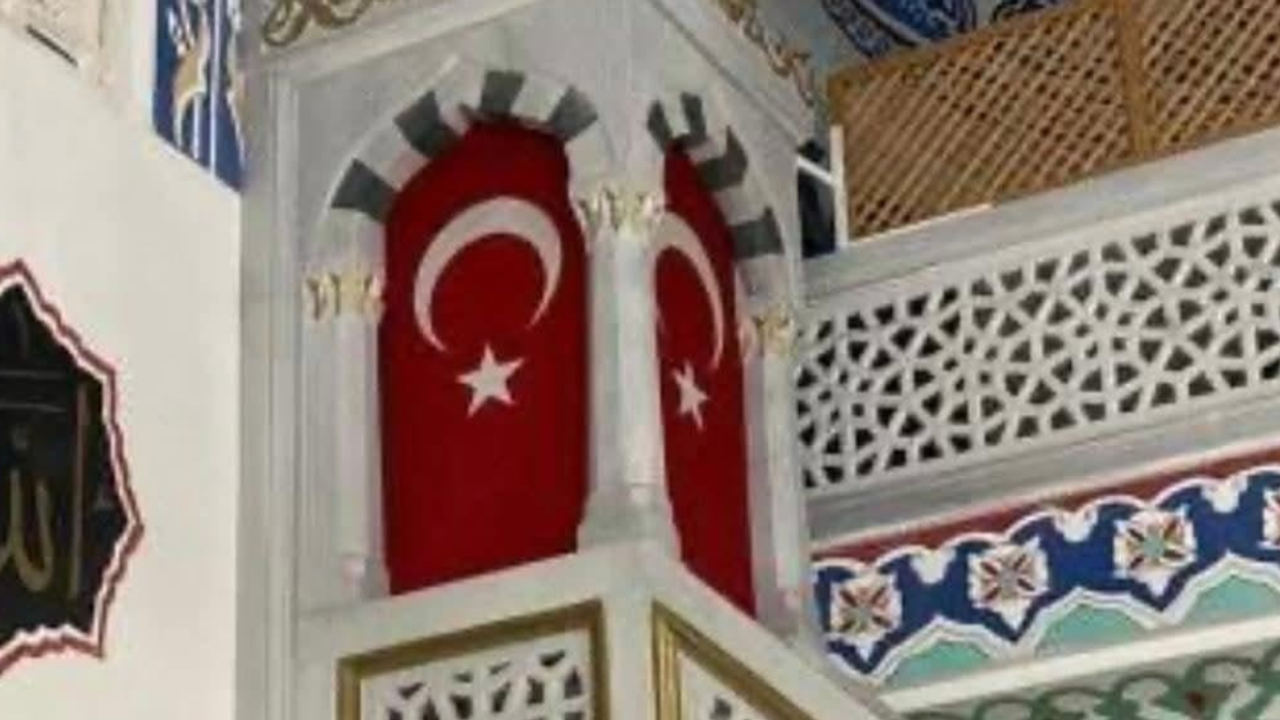 Muradiye Camii İmamı Muhammed Lütfi Taşcı, camilerde cuma hutbesi irad edilirken minbere Türk bayrağı asılmasını