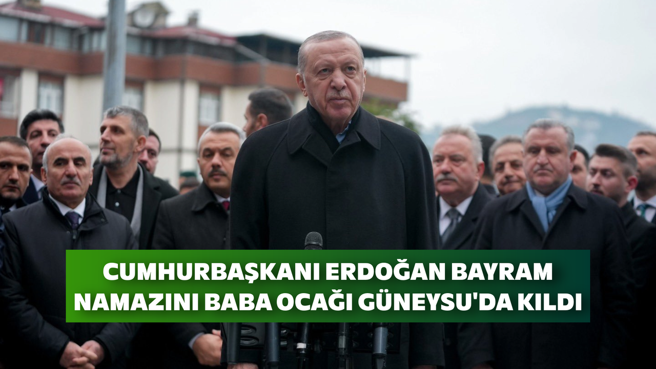 Önceki gece Rize'ye gelerek baba ocağında istirahate çekilen ve bayram arifesini akrabalarıyla hasret gidererek geçiren Cumhurbaşkanı Erdoğan, bayram sabahı Güneysu Merkez Camii'ndeydi. Cami çıkışında vatandaşlarla bir araya gelerek sohbet eden Erdoğan, ardından basın mensuplarına açıklamalarda bulundu. Tüm İslam aleminin bayramını tebrik eden Erdoğan, "Rabb'im Ramazan Bayramı'nın tüm alemi İslam için kurtuluşa, dirilişe vesile olmasını nasip eylesin. Ülkemizde de birliğin, kardeşliğin vesilesi kılsın" dedi.