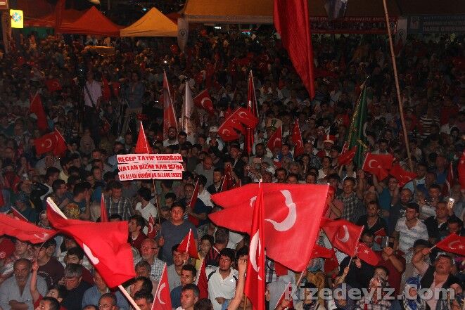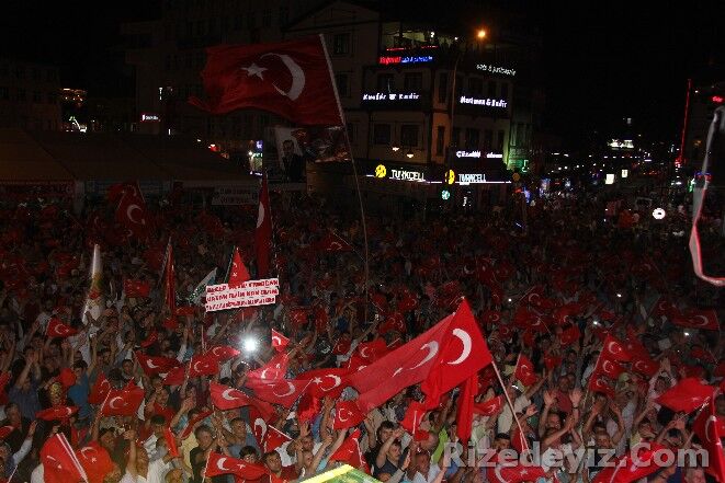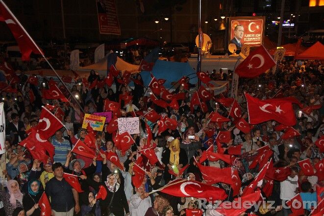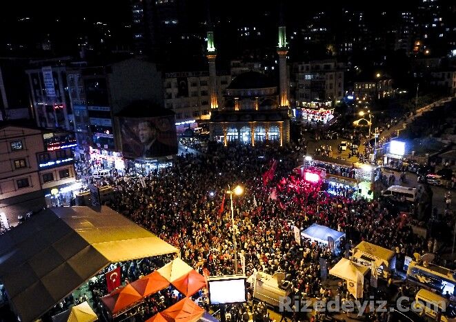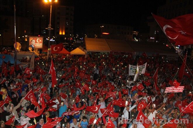 Ak Parti Genel Başkan Yardımcısı Hayati Yazıcı, saat 22:00 sıralarında geldiği Rize Demokrasi ve Cumhuriyet Meydanı’nda darbe girişimi sonrası başlayan demokrasi nöbetine katıldı.
