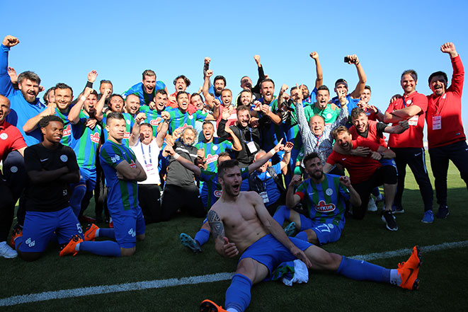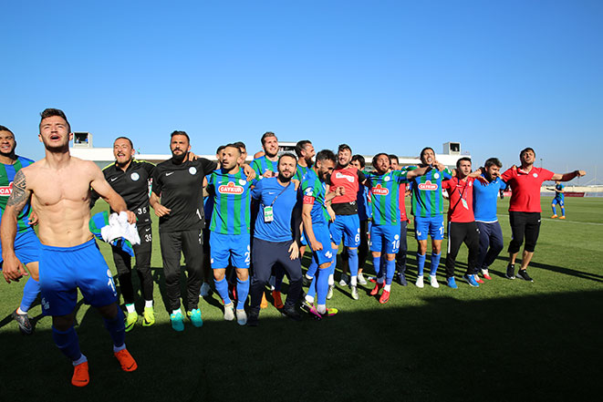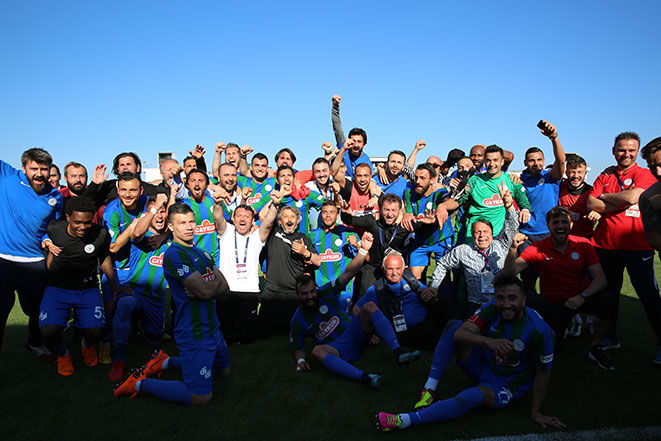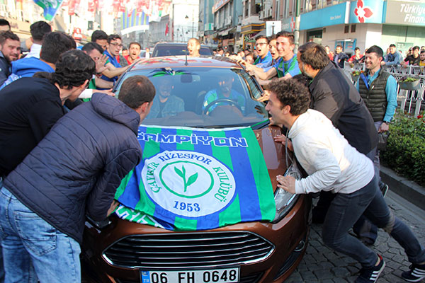 Çaykur Rizesporun Spor Toto 1`inci Lig`in 33`üncü haftasında deplasmanda konuk olduğu Ümraniyespor`u 1-0 yenerek ligin bitimine bir hafta kala şampiyonluğunu ilan etmesi ve Süper Lige çıkması, Rize`de coşkuyla kutlandı.