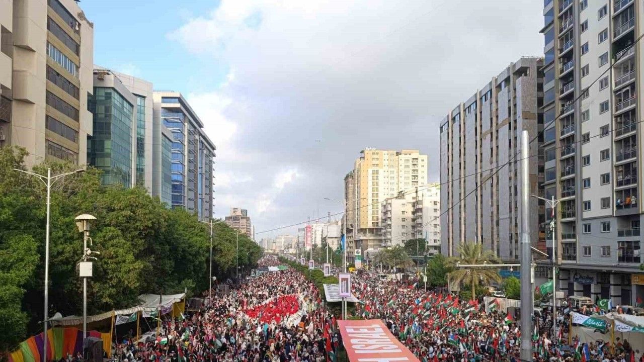 Pakistan’ın Karaçi kentinde binlerce kişi Gazze Şeridi için sokağa indi. Cemaat-i İslami Partisi liderliğinde düzenlenen gösteride, ellerinde Filistin bayrakları taşıyan protestocular, Gazze Şeridi ile dayanışma içinde olduklarını ifade etti.