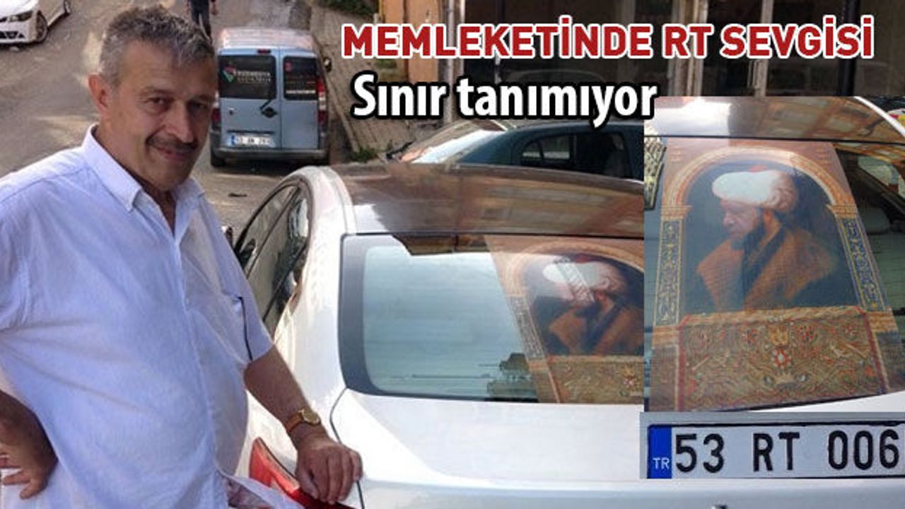 Rize Kıbledağı köyünde yaşayan Mehmet Fırat isimli vatandaş edindiği 53 RT 006 plaka ardından şimdide Cumhurbaşkanı Recep Tayyip Erdoğan'ın sevgisini aracınının camına Osmanlı padişahı şeklindeki posterini yapıştırarak gösterdi.