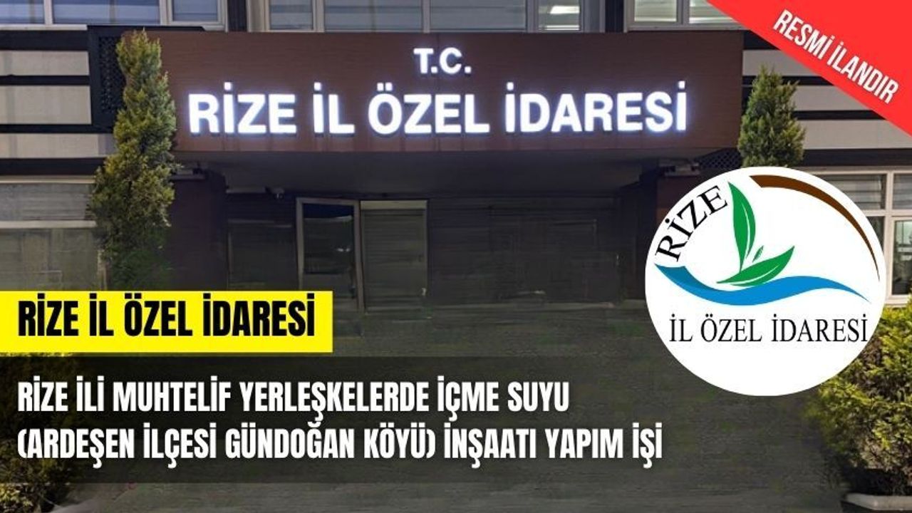 Rize İli Muhtelif Yerleşkelerde İçme Suyu ( Ardeşen İlçesi Gündoğan Köyü ) İnşaatı Yapım İşi 4734 sayılı Kamu İhale Kanununun 19 uncu maddesine göre açık ihale usulü ile ihale edilecek olup, teklifler sadece elektronik ortamda EKAP üzerinden alınacaktır. İhaleye ilişkin ayrıntılı bilgiler aşağıda yer almaktadır: