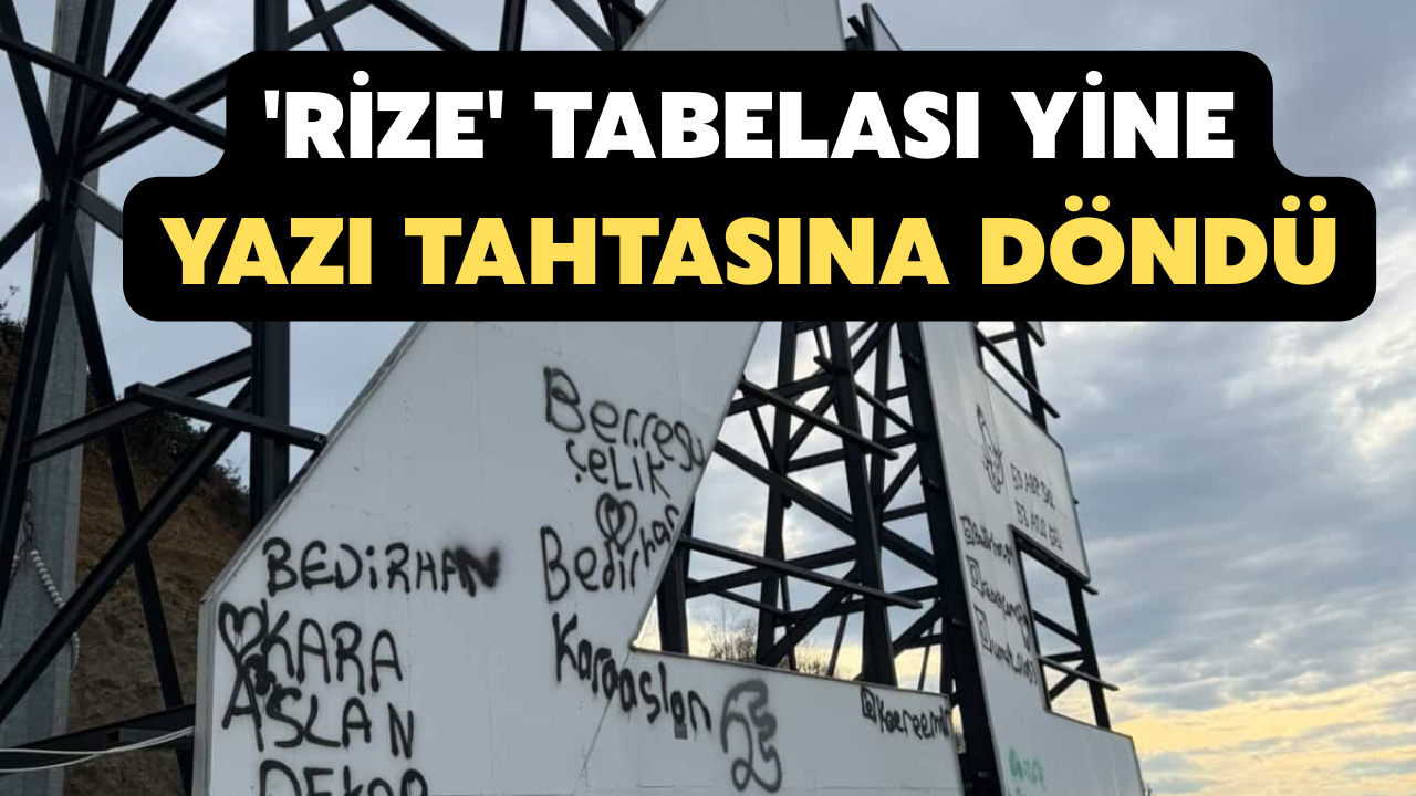 Rize Belediyesi tarafından Şahin Tepesi mevkiine yerleştirilen 'Rize' yazılı dev tabela kimliği belirsiz kişilerce yeniden tahrip edildi.