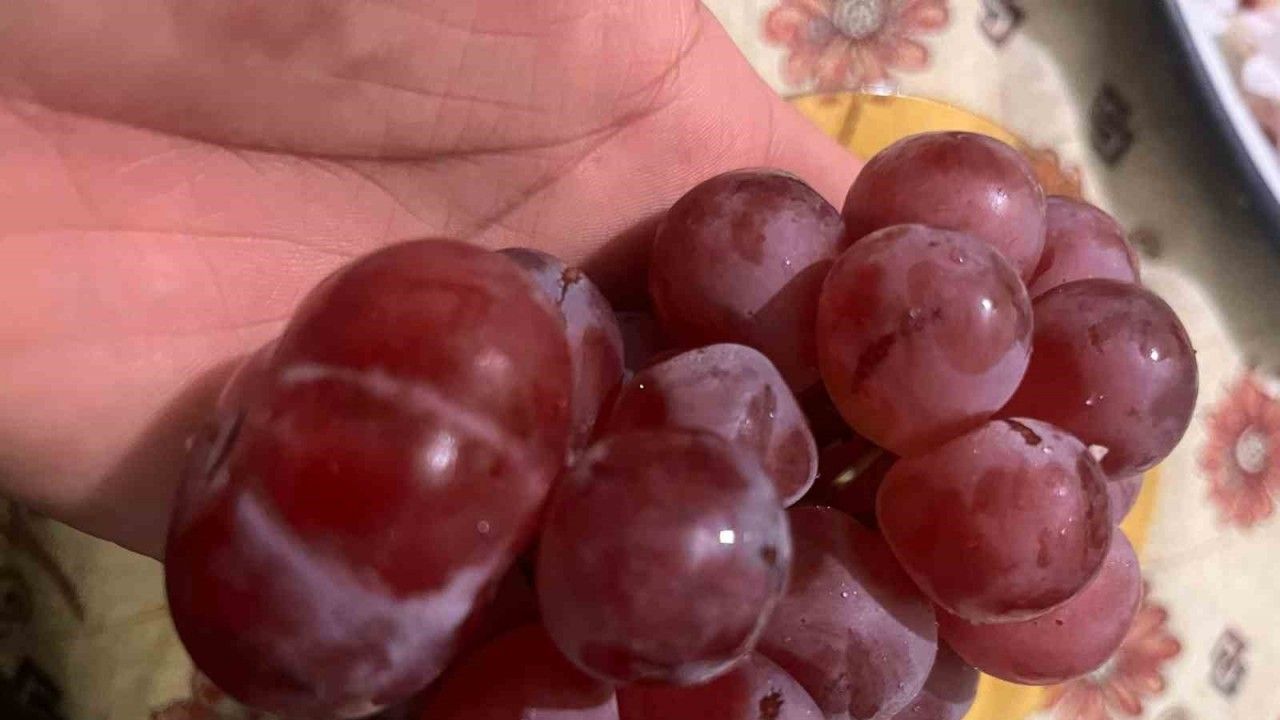 Bir manavdan alışveriş yapan Metin Türk’ün eve getirdiği 1 kilogramlık üzüm, içindeki sıra dışı bir taneyle hem ev halkını hem de görenleri şaşırttı. Üzüm salkımından ayrılan dev tanenin ağırlığı, normal üzüm tanelerinin neredeyse dört katı çıktı. Dev üzüm tanesi kısa sürede ev halkının ve misafirlerin ilgi odağı olurken, görenler tanelerin arasındaki olağanüstü farkı hayranlıkla izledi. Üzüm tanesini tartan Metin Türk, terazideki rakamları görünce kısa süreli şaşkınlık yaşadı. Genellikle 5-6 gram gelen sıradan üzüm tanelerine kıyasla bu olağanüstü tanenin tam 26 gram geldiğini kaydeden Metin Türk, durumu merak edip taneleri tek tek hassas terazide tarttığını belirtti.