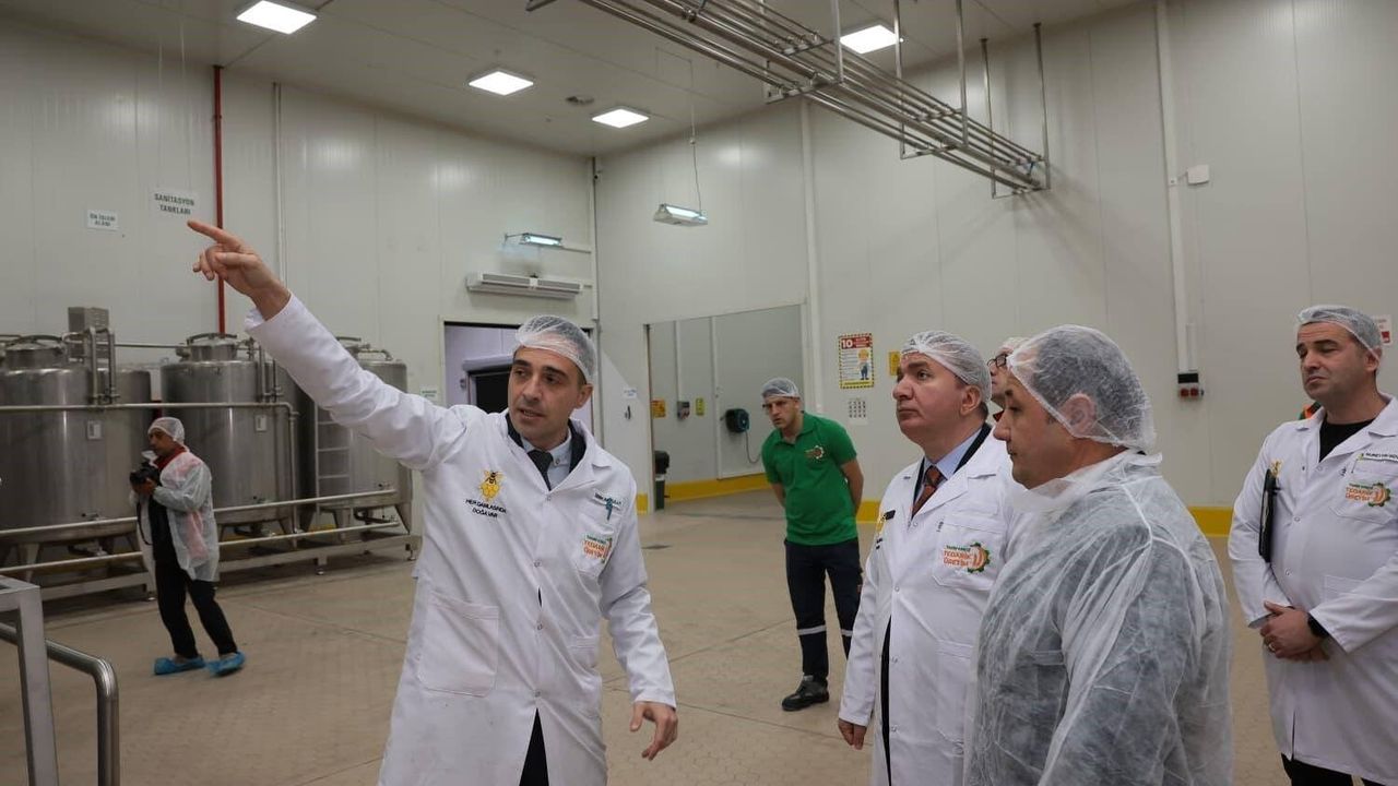 Tesisteki son teknoloji üniteleri gezen Aydoğdu, balın işlenme ve paketleme süreçlerini yerinde inceledi.