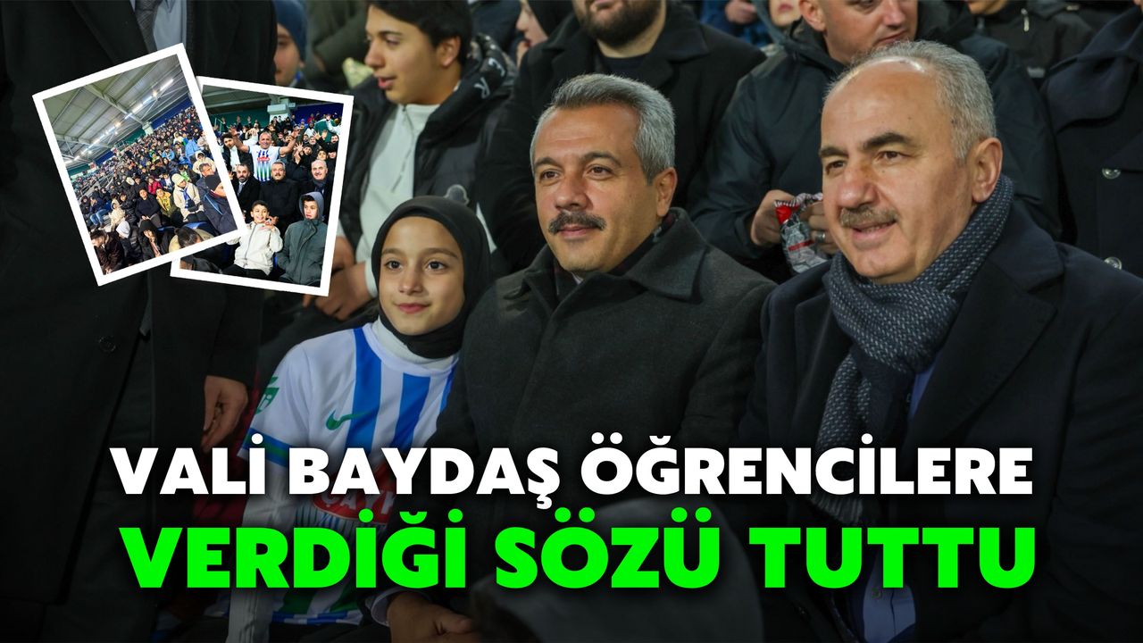 Vali Baydaş verdiği sözü tutarak, Çaykur Rizespor'un Ziraat Türkiye Kupası'nda Gaziantep FK ile karşılaştığı müsabakayı öğrencilerle birlikte 'aile tribünü'nde takip etti.