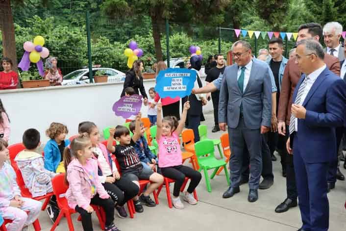 Kütüphane açılışının ardından Fındıklı'da yenileme çalışmaları tamamlanan Ahmet Şahinler Anaokulu bahçe ve oyun parkının açılış törenine katılan Vali Çeber, öğrenciler tarafından hazırlanan gösteriler ile karşılanandı.